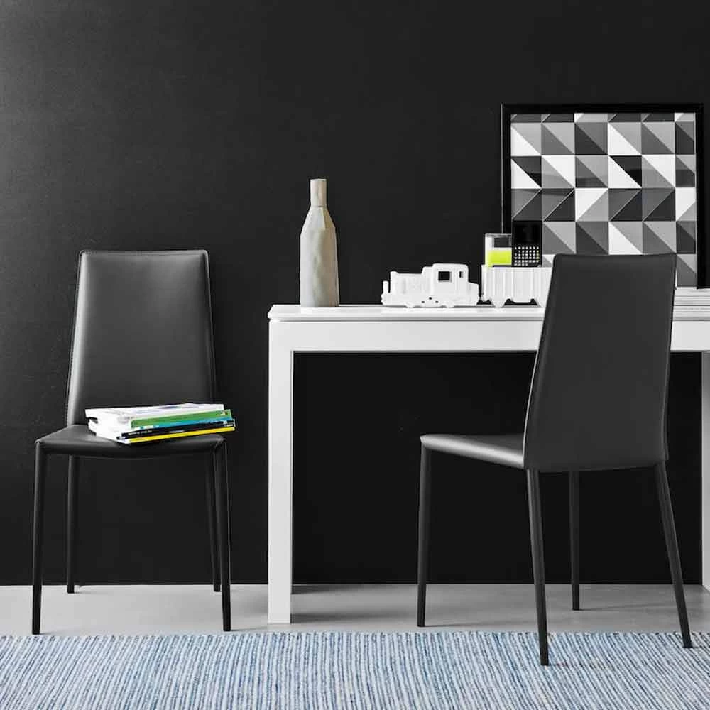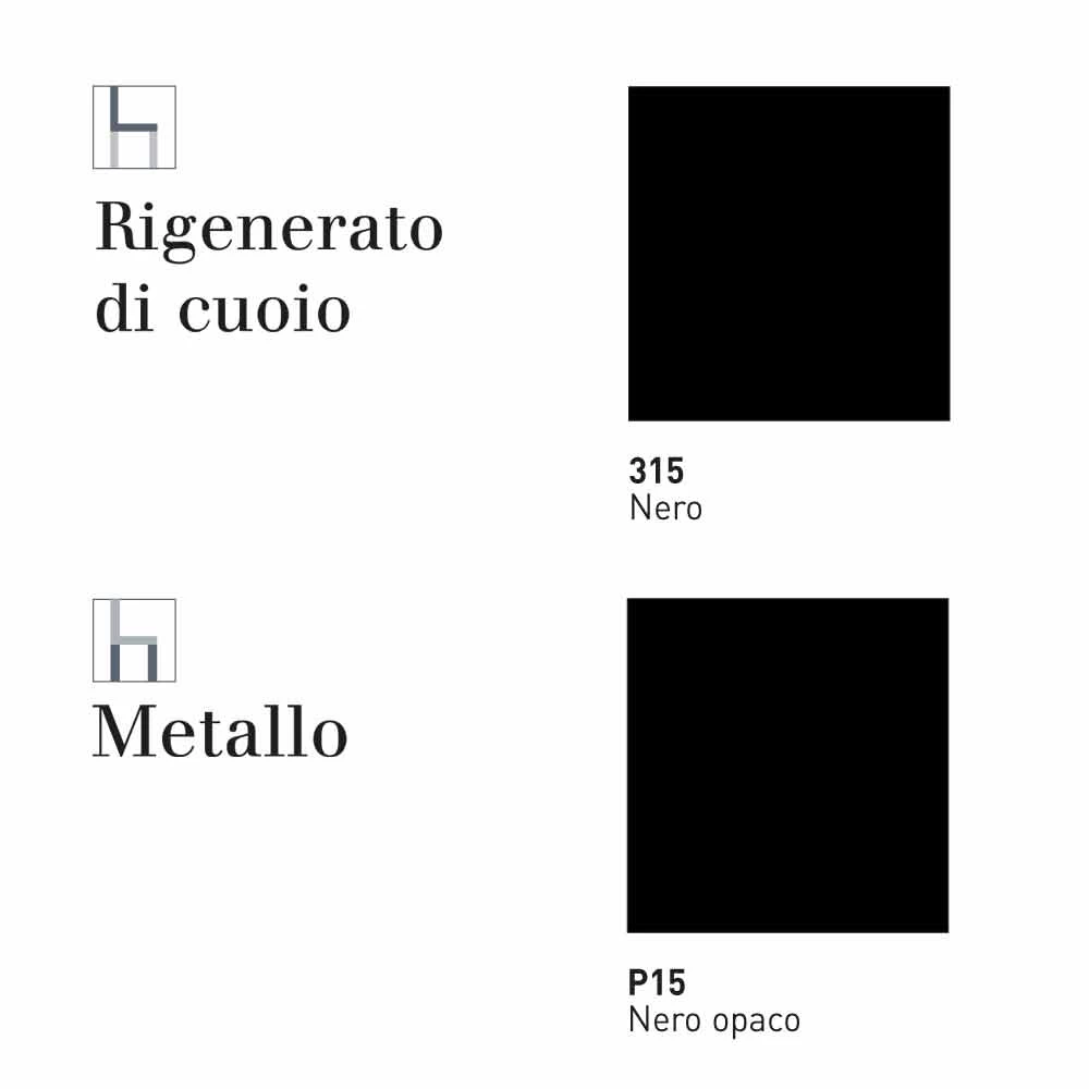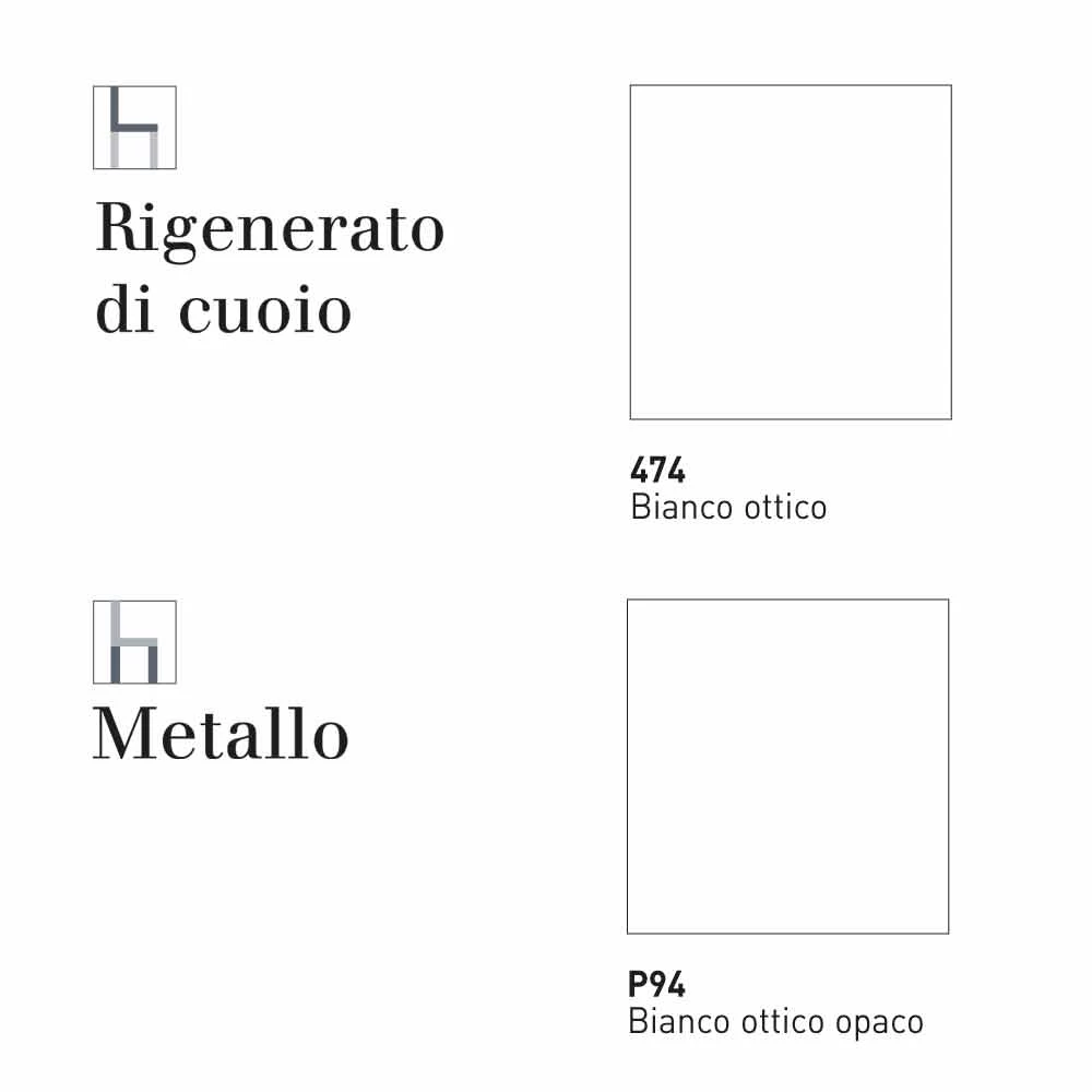 El asiento y el respaldo están tapizados en cuero regenerado – un material que consiste en cuero y otras fibras naturales y terminado como el cuero cabelludo – mientras que la sección cónica piernas están hechas de acero tubular. El cuidado diseño de las líneas también denota la coherencia cromática entre la estructura y el asiento con forma. La costura embellecer otras vistas en la silla.