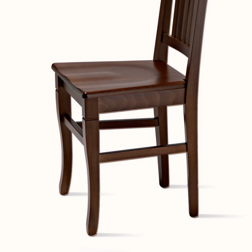 Esta silla de salón está fabricada íntegramente en Italia en madera maciza de haya disponible en varios acabados .