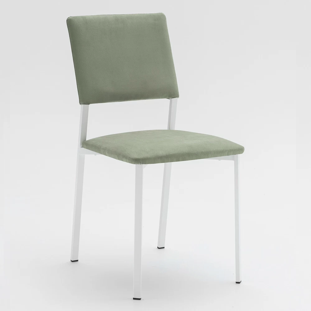 Silla de salón moderna fabricada en Italia con estructura de metal pintado y asiento tapizado íntegramente en microfibra disponible en cuatro acabados diferentes. Esencialidad y minimalismo son las características peculiares de este mueble de estilo contemporáneo diseñado para quienes aman los muebles sencillos pero al mismo tiempo con un fuerte impacto visual . La ligereza estética marcada por sus formas es su mayor fortaleza, permitiéndole insertarse en cualquier contexto, resultando siempre único y original .