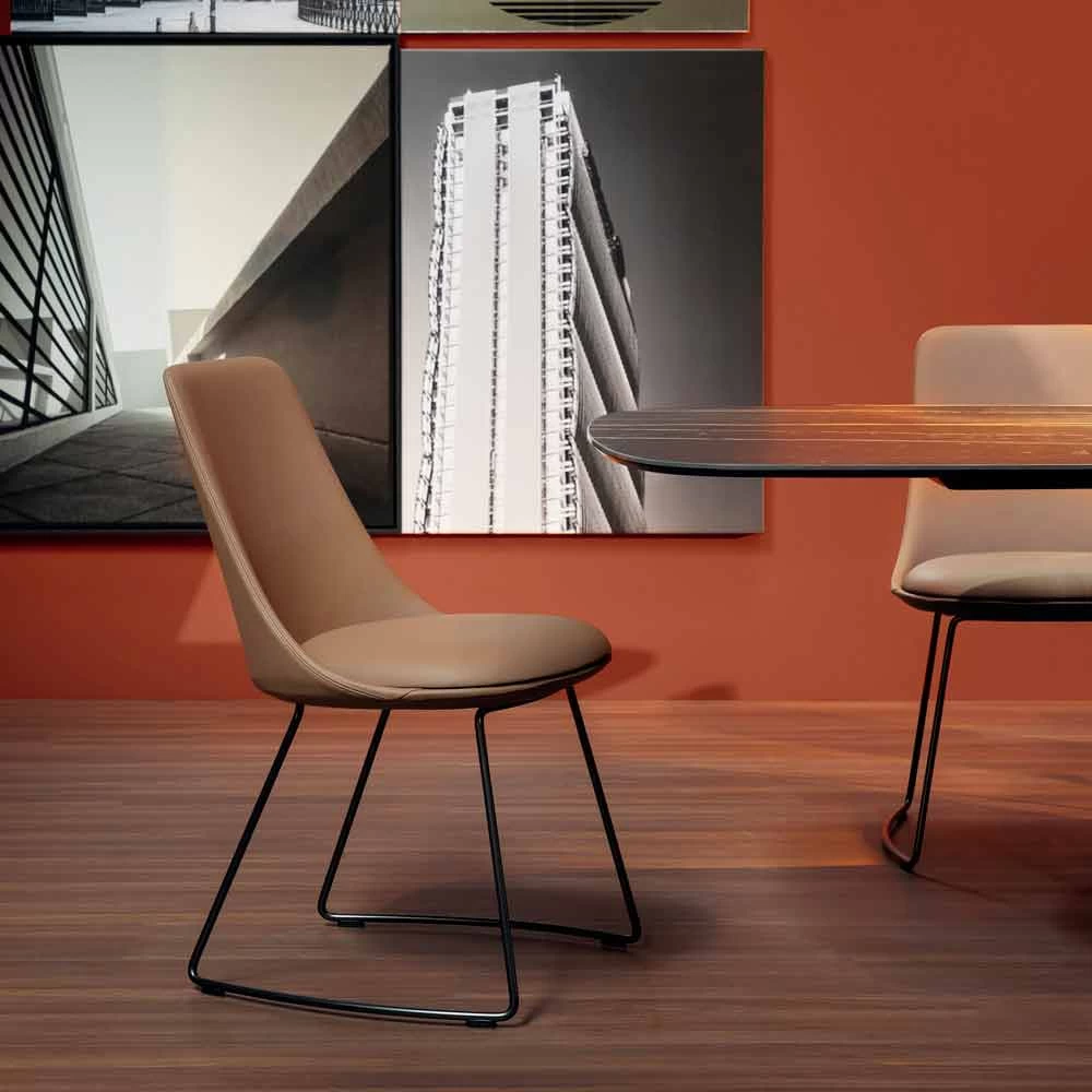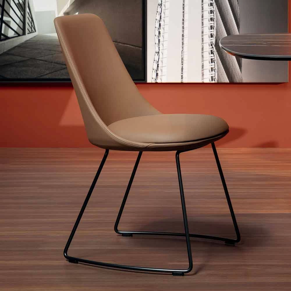 Moderna silla tapizada de salón hecha en Italia con cuero.