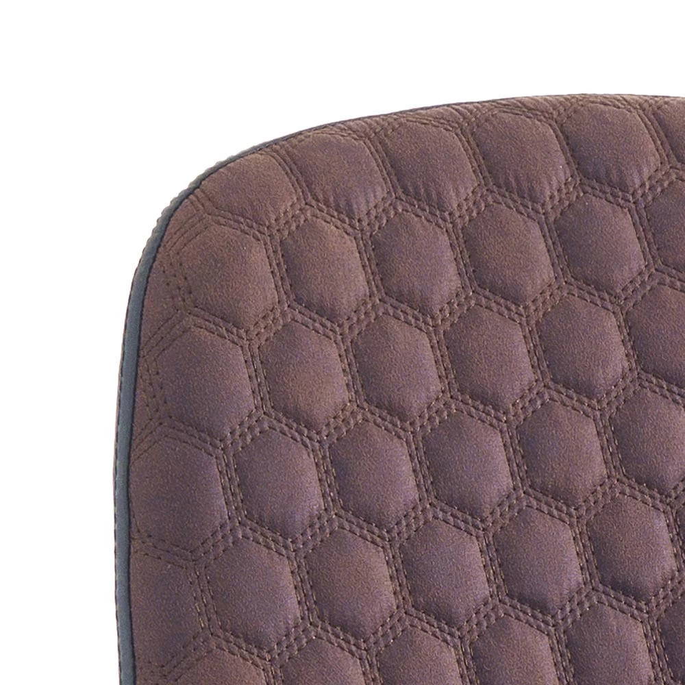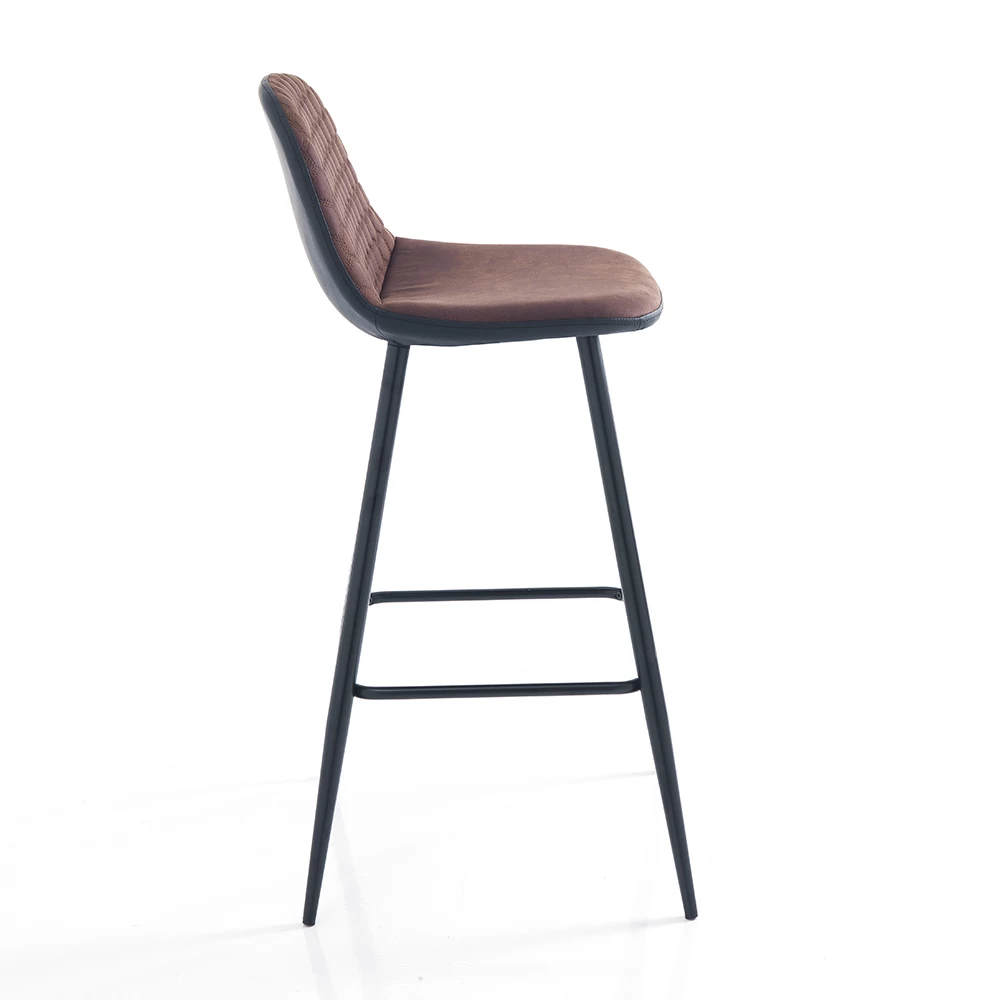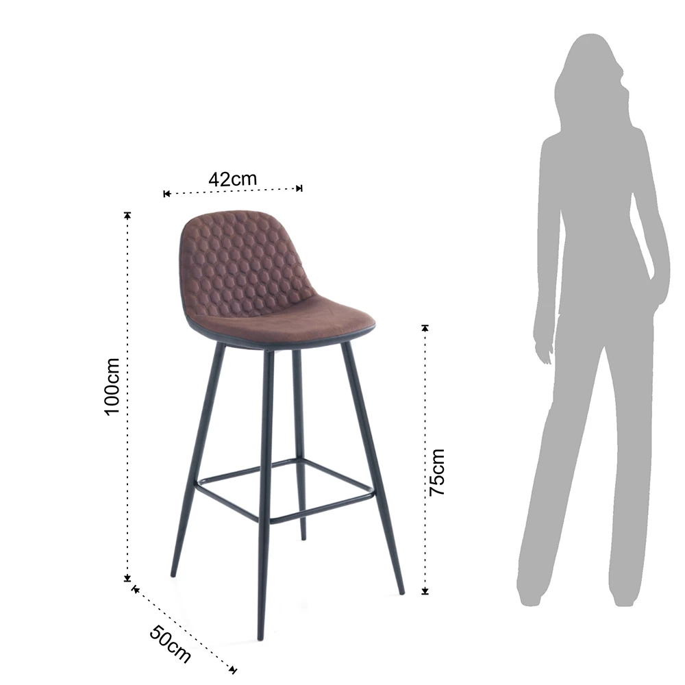 Taburete alto de cocina tapizado en tejido de microfibra efecto terciopelo envejecido con respaldo de piel sintética negra y estructura de metal pintado negro mate con práctico reposapiés. Para enriquecer su estética simple está el respaldo acolchado y acolchado con costuras geométricas que hacen que el look final sea único para un resultado refinado y elegante . Su forma es acogedora y confortable, por lo que es ideal para asegurar un asiento suave y confortable en espacios domésticos pero también en ambientes contract como bares y restaurantes donde completa el mobiliario circundante con personalidad y gusto .