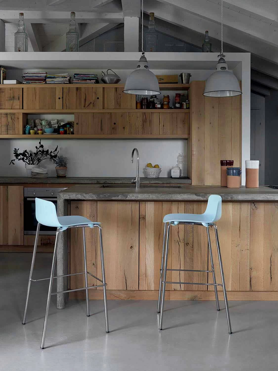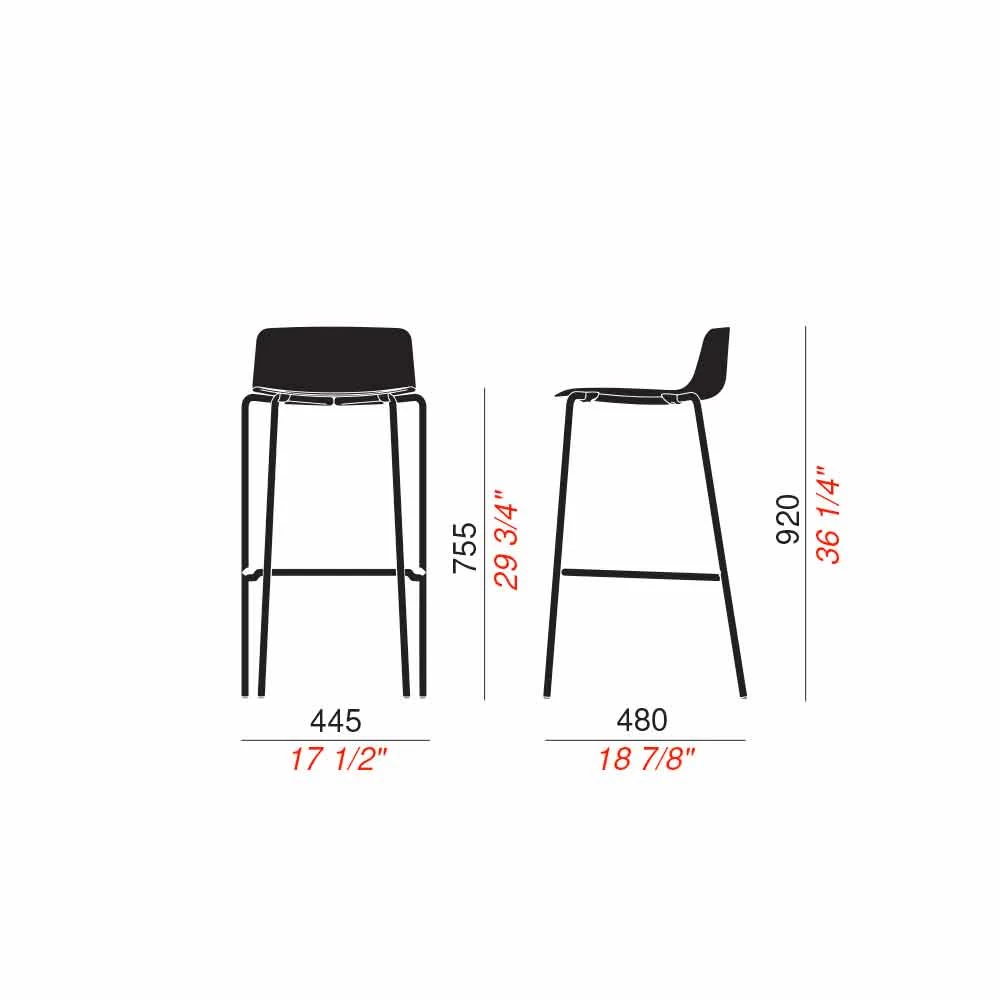 2 taburetes de metal y polipropileno con respaldo apilable Made in Italy.