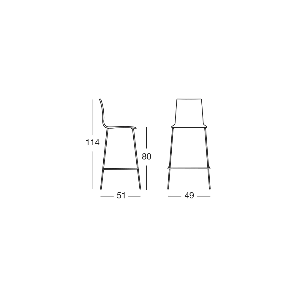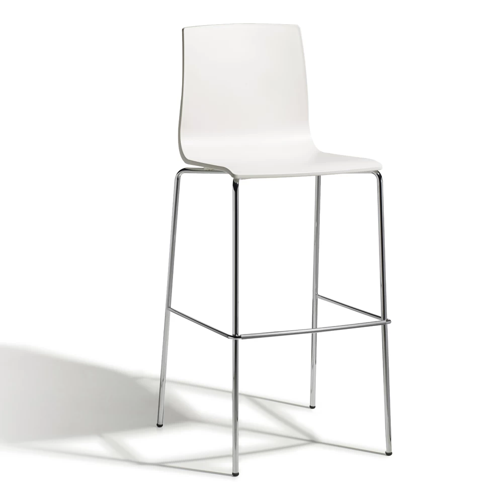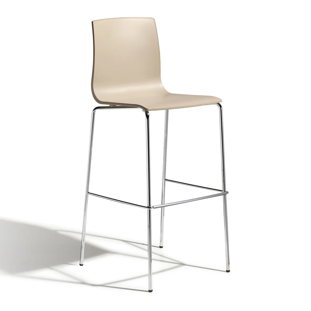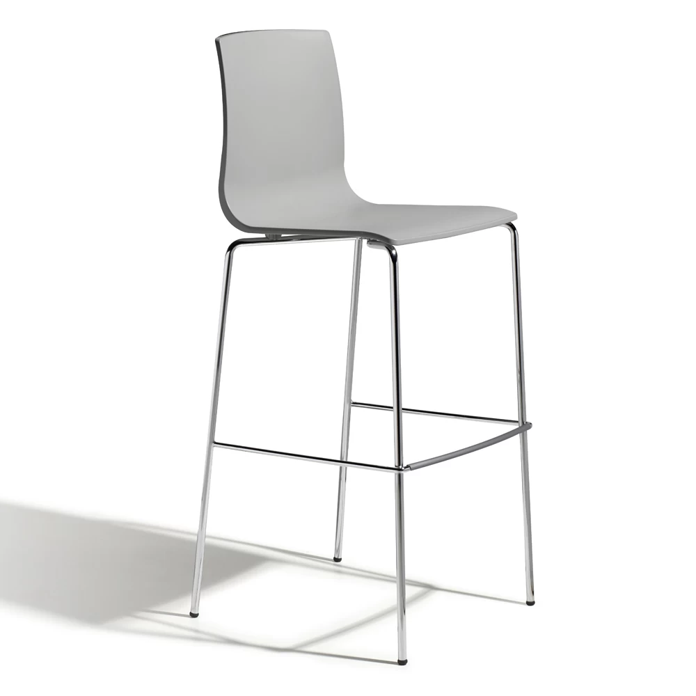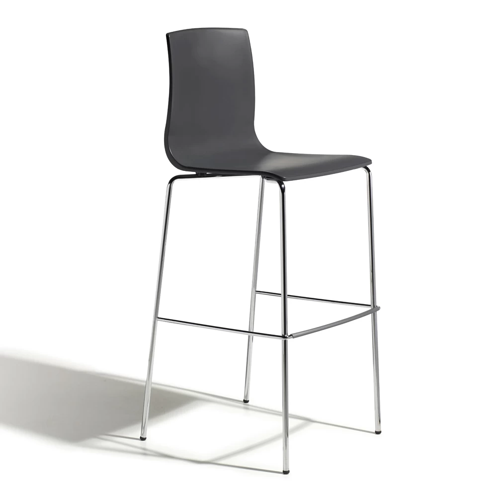 Taburete moderno Made in Italy compuesto por una carcasa de tecnopolímero reciclable y una estructura de 4 patas con reposapiés de tubo de acero con un diámetro de 16 mm que permite apilar hasta un máximo de 4 unidades.