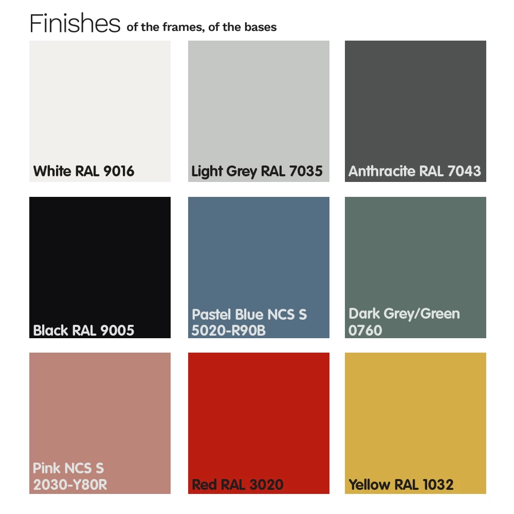NB : la estructura y el asiento están disponibles en una amplia gama de colores y acabados. El taburete también está disponible con una altura de 91 cm.