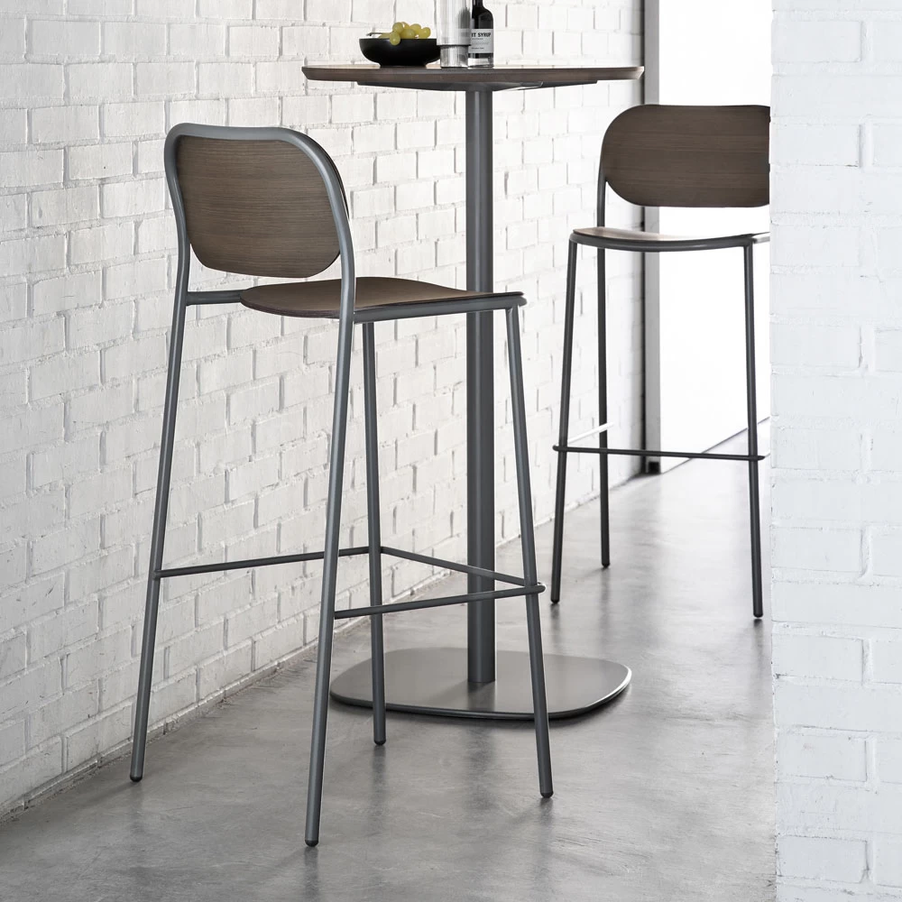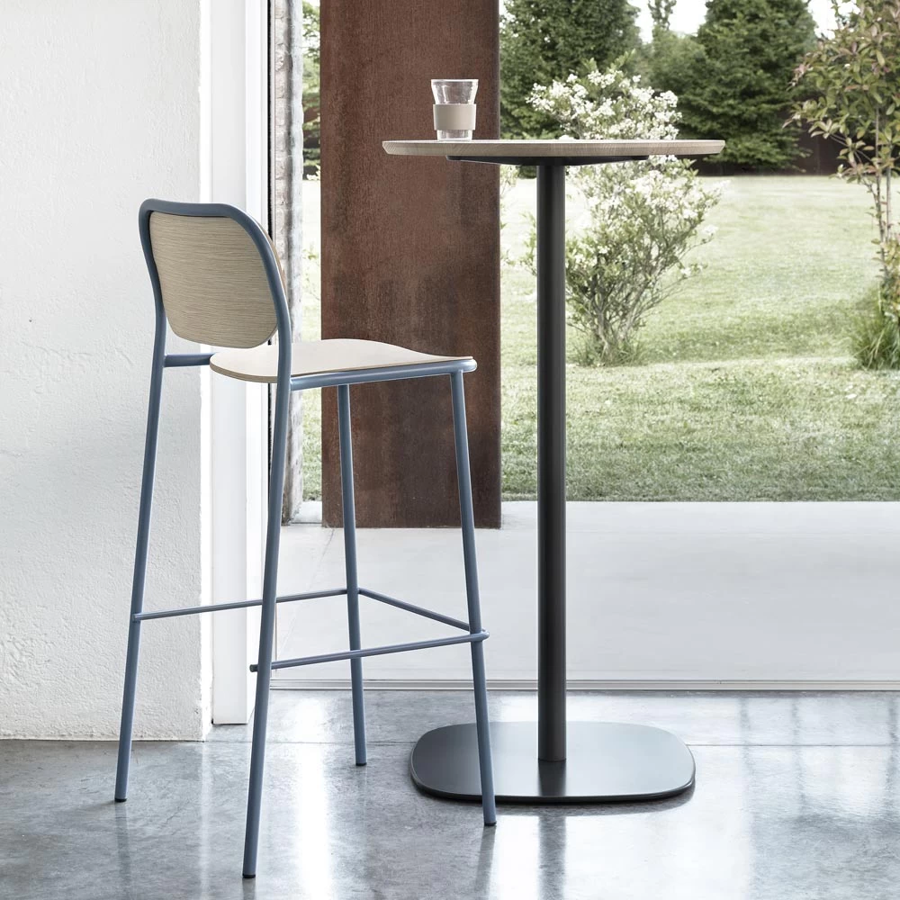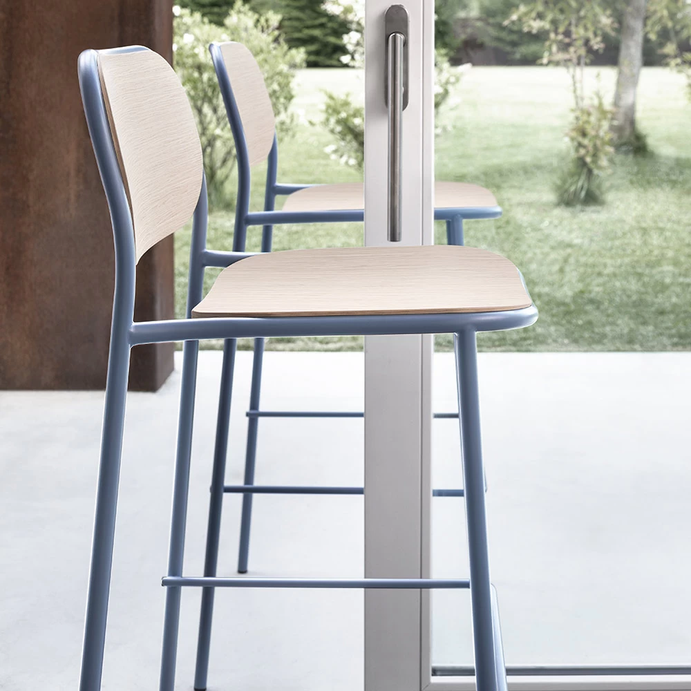 Taburete alto de cocina con estructura de metal pintado con práctico reposapiés y asiento y respaldo de madera. Realizado a través de un proceso de producción 100% Made in Italy , este complemento ofrece una excelente solidez gracias al uso de materias primas de alta calidad . Su diseño se caracteriza por una maravillosa armonía de líneas y formas que ofrecen un gran confort inspirado en el estilo nórdico propio de los años cincuenta. Lo que nace es un taburete de estética refinada que revisita un estilo tradicional en clave contemporánea, dando vida a un ambiente vintage con un gusto atemporal capaz de conquistar cualquier ambiente gracias a su marcada personalidad moderna .