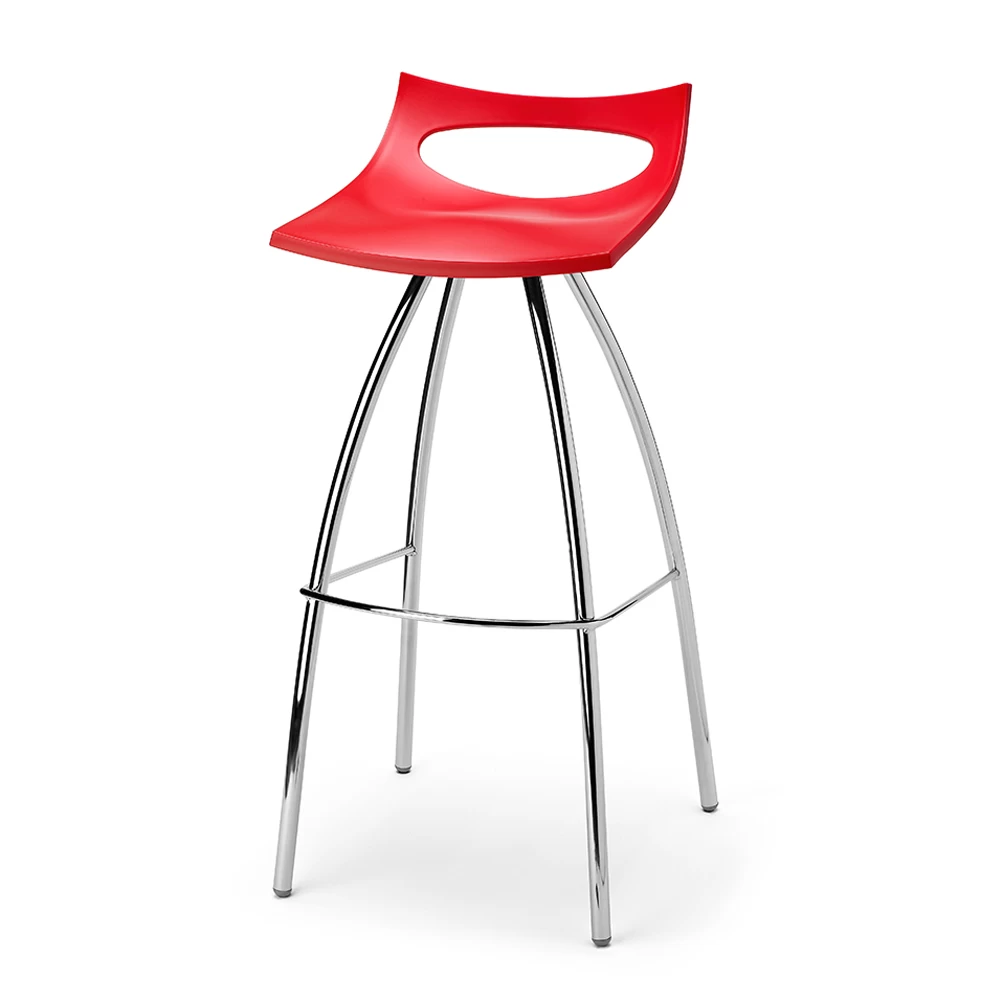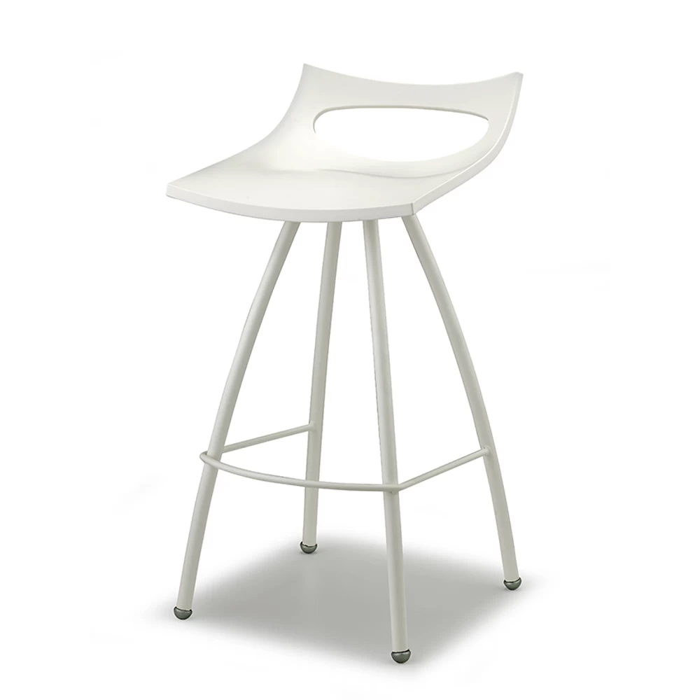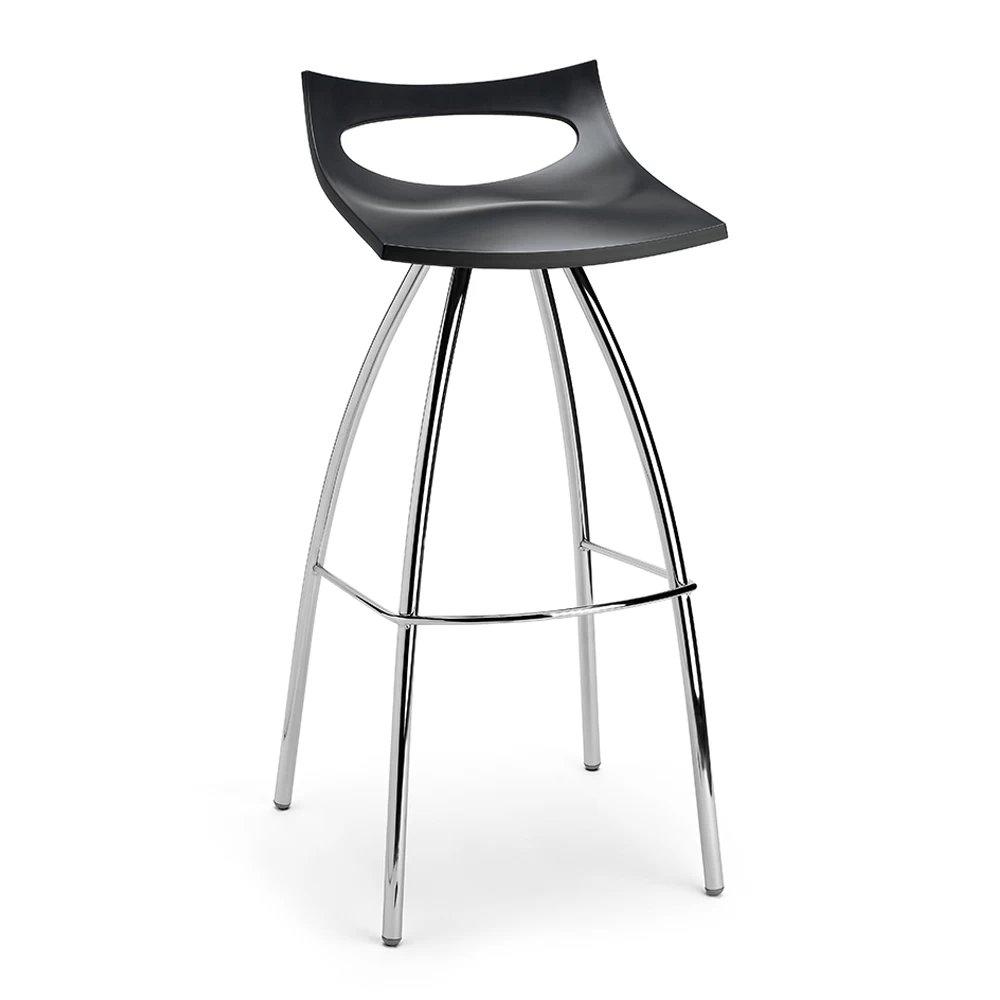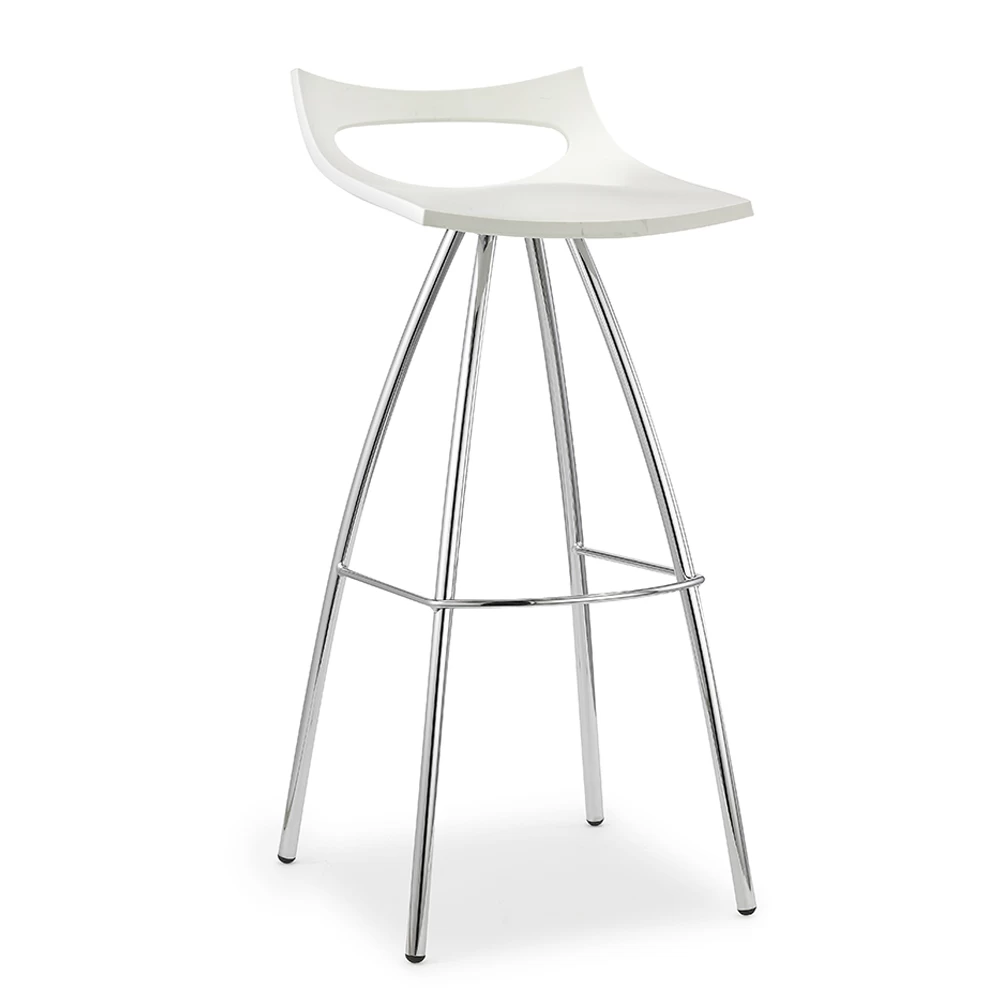 Taburete de diseño moderno e innovador hecho en Italia con estructura de tubo de acero de 2,2 cm de diámetro completo con un práctico reposapiés y asiento en tecnopolímero reciclable .