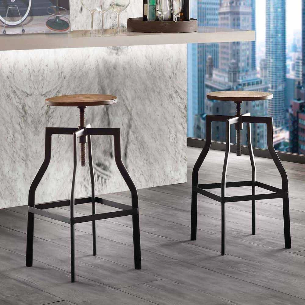 Consta de una estructura industrial de metal negro y un asiento en nogal industrial regulable en altura hasta un máximo de H76 cm. Garantiza el máximo estilo y comodidad con este taburete.
