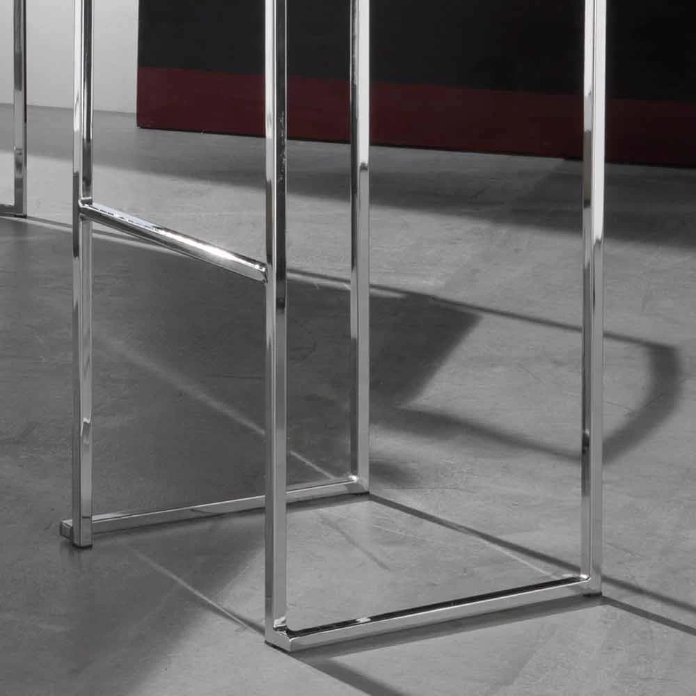 La estructura es de acero cromado mientras que el asiento es de cuero ecológico.