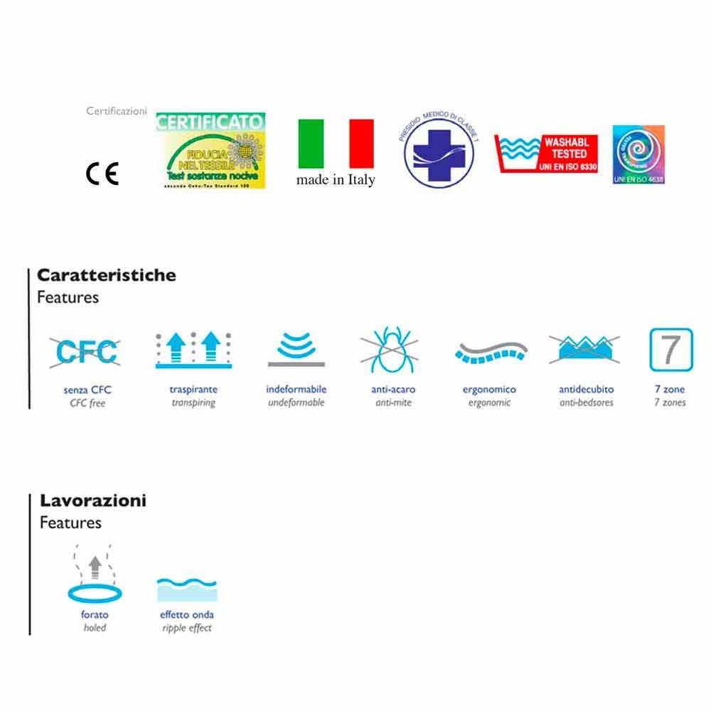 Además, gracias a su capacidad de «deformar», sin embargo, recuperar rápidamente el tamaño original, es capaz de garantizar la columna vertebral la posición más correcta durante el reposo, adaptándose perfectamente a la forma del cuerpo esostenendolo de manera óptima en todas sus partes.