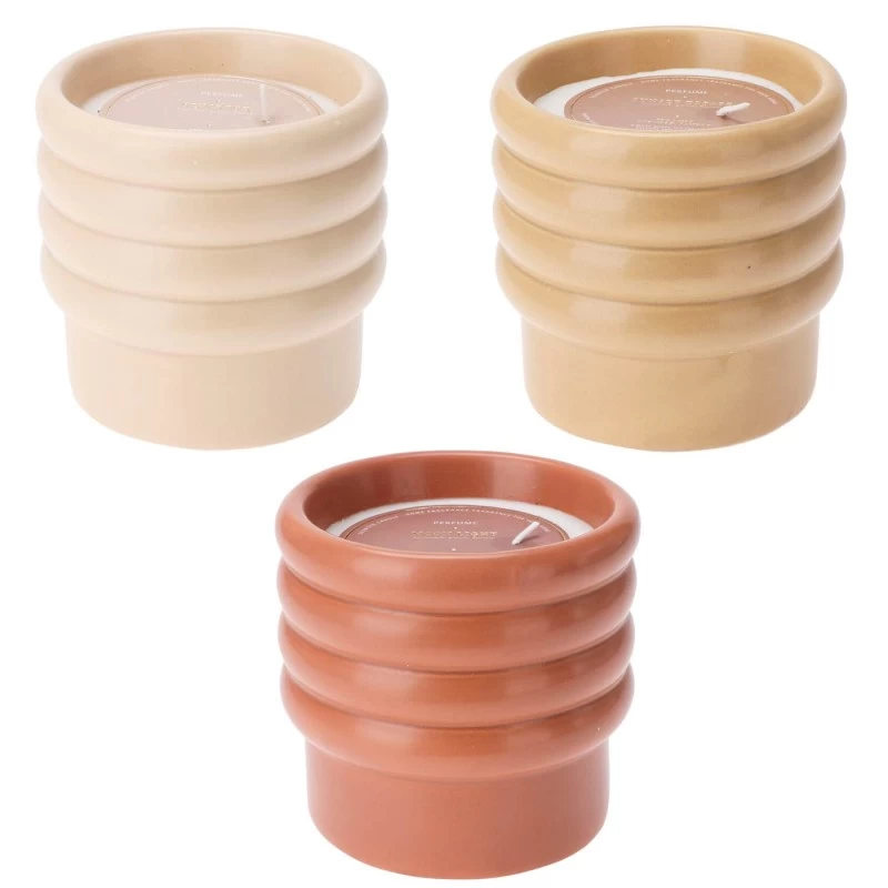 Vela perfumada fabricada en cerámica de 11cm de altura disponible en tres colores diferentes a elegir. Crea una atmósfera agradable y perfumada a la vez que complementas tu decoración. Perfecta para colocar en la entrada y tener siempre un aroma agradable nada al entrar por la puerta de casa. ¡Elige tu preferida!
