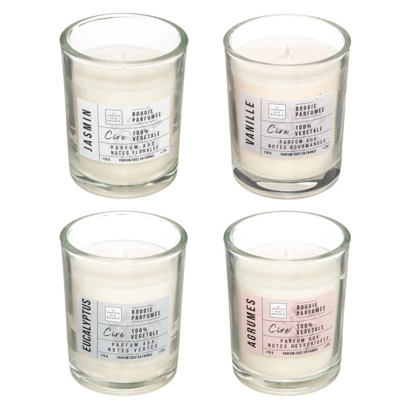 Vela perfumada fabricada en vidrio disponible en cuatro aromas diferentes a elegir. Ambienta tus estancias con estas velitas fácilmente combinables y que añadirán un extra a la decoración de tu casa. ¡Quedarán bien en cualquier rincón! ¿Con cuál te quedas?