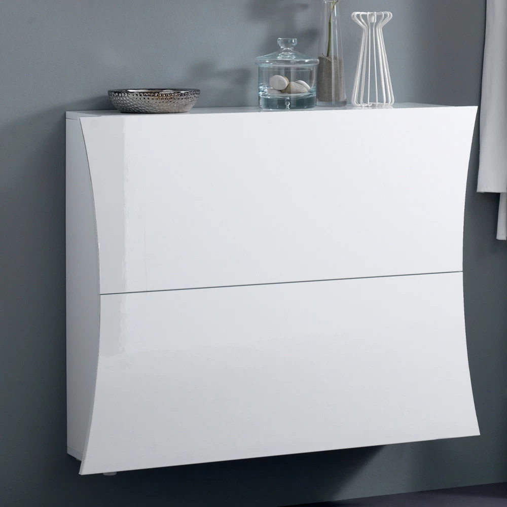 Zapatero blanco con 2 puertas en madera blanca de diseño arqueado y moderno, made in Italy.